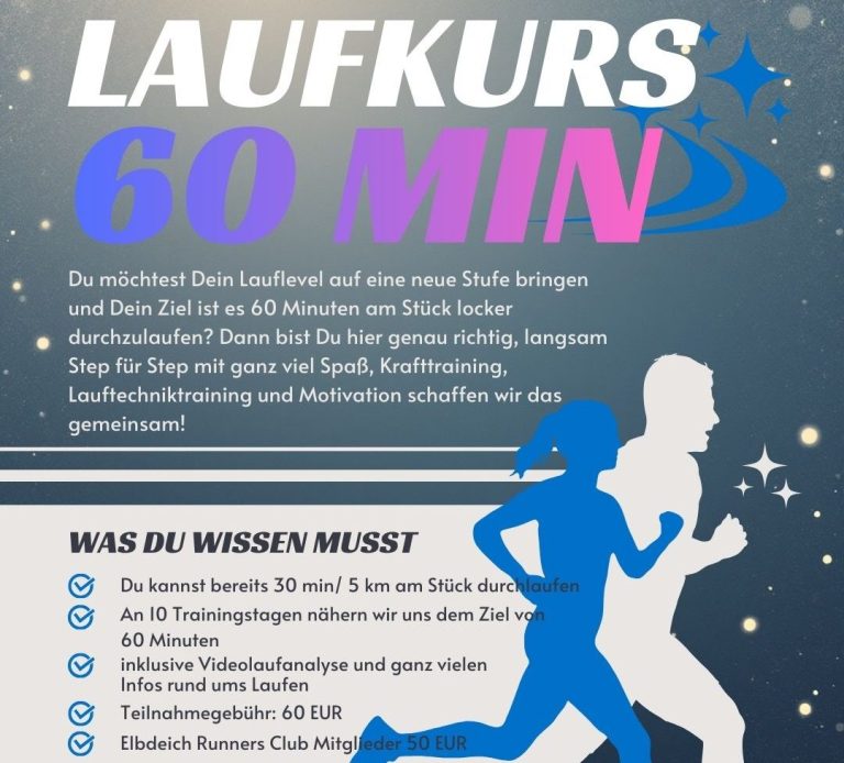 Wenn Du schon 30 Minuten entspannt durchlaufen kannst, aber jetzt mehr möchtest, dann bist Du hier genau richtig. Er findet immer an 10 aufeinanderfolgenden Dienstagen statt. Der Kurs startet um 19:15 Uhr,